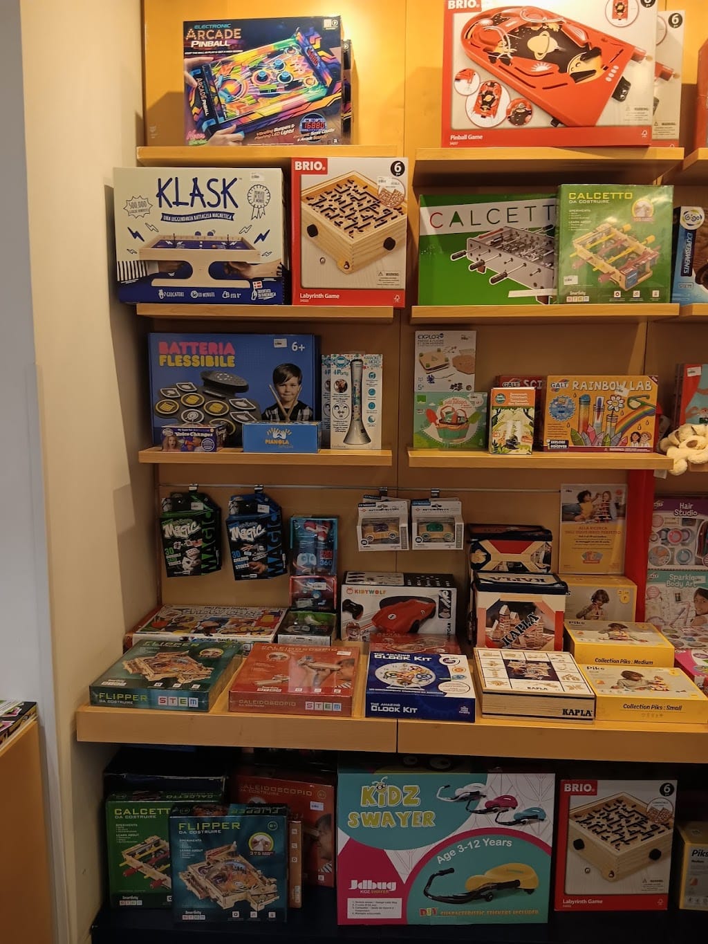 🧸 Il punto di forza del negozio è l’ampiezza dell’assortimento, che comprende giochi in legno, giochi di società, libri illustrati, attività creative, costruzioni, articoli montessoriani, strumenti per esplorare la natura e il cielo, giochi scientifici e proposte per la crescita fin dalla prima infanzia. L’offerta è pensata per stimolare curiosità e partecipazione attiva, allontanandosi dall’idea del semplice giocattolo usa-e-getta.